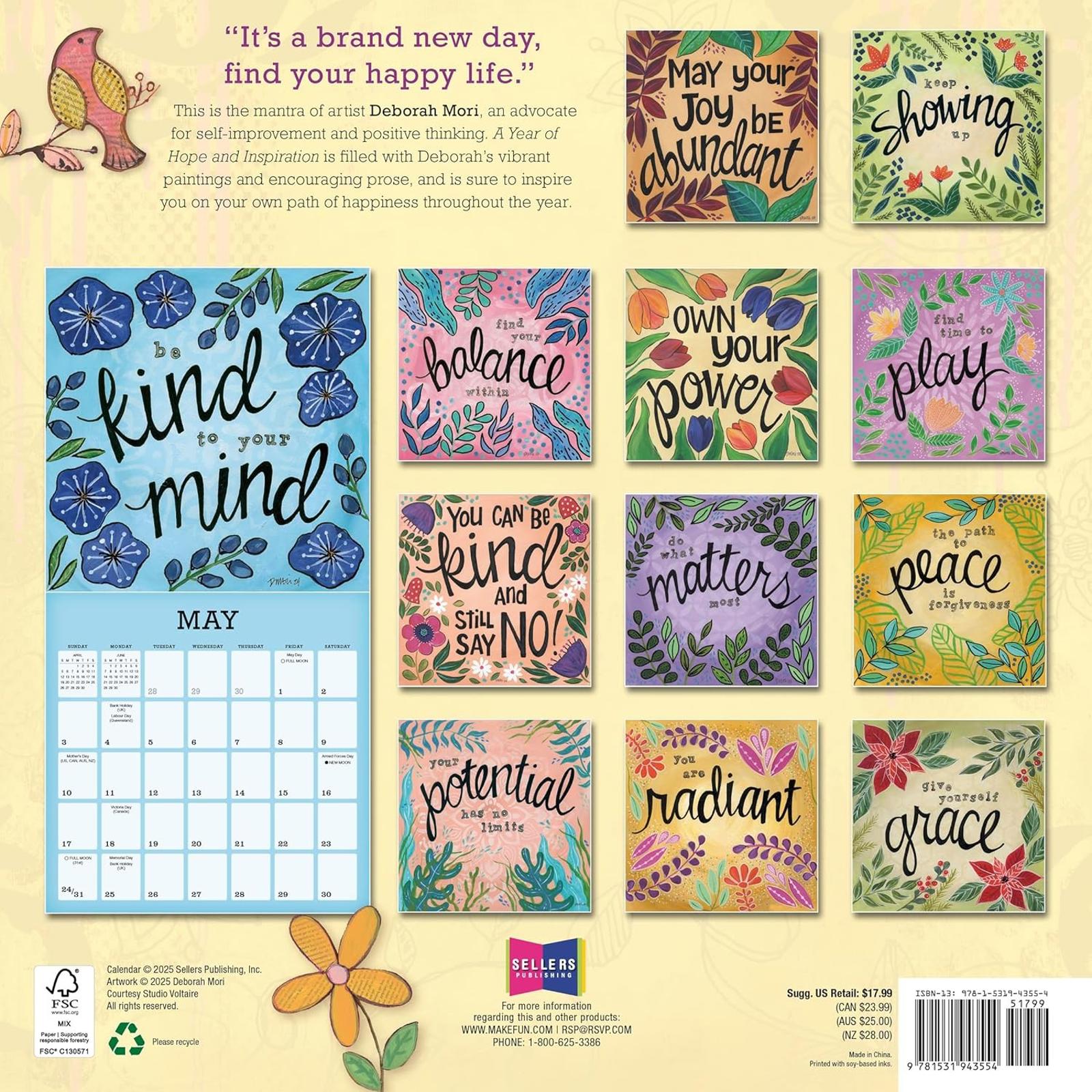 It’s a brand new day, find your happy life! That is the favorite mantra of graphic designer Deborah Mori. Mori has filled A Year of Hope and Inspiration with her vibrant paintings and wise words. Her positive prose and uplifting art will inspire you to travel your own path to happiness throughout the year.