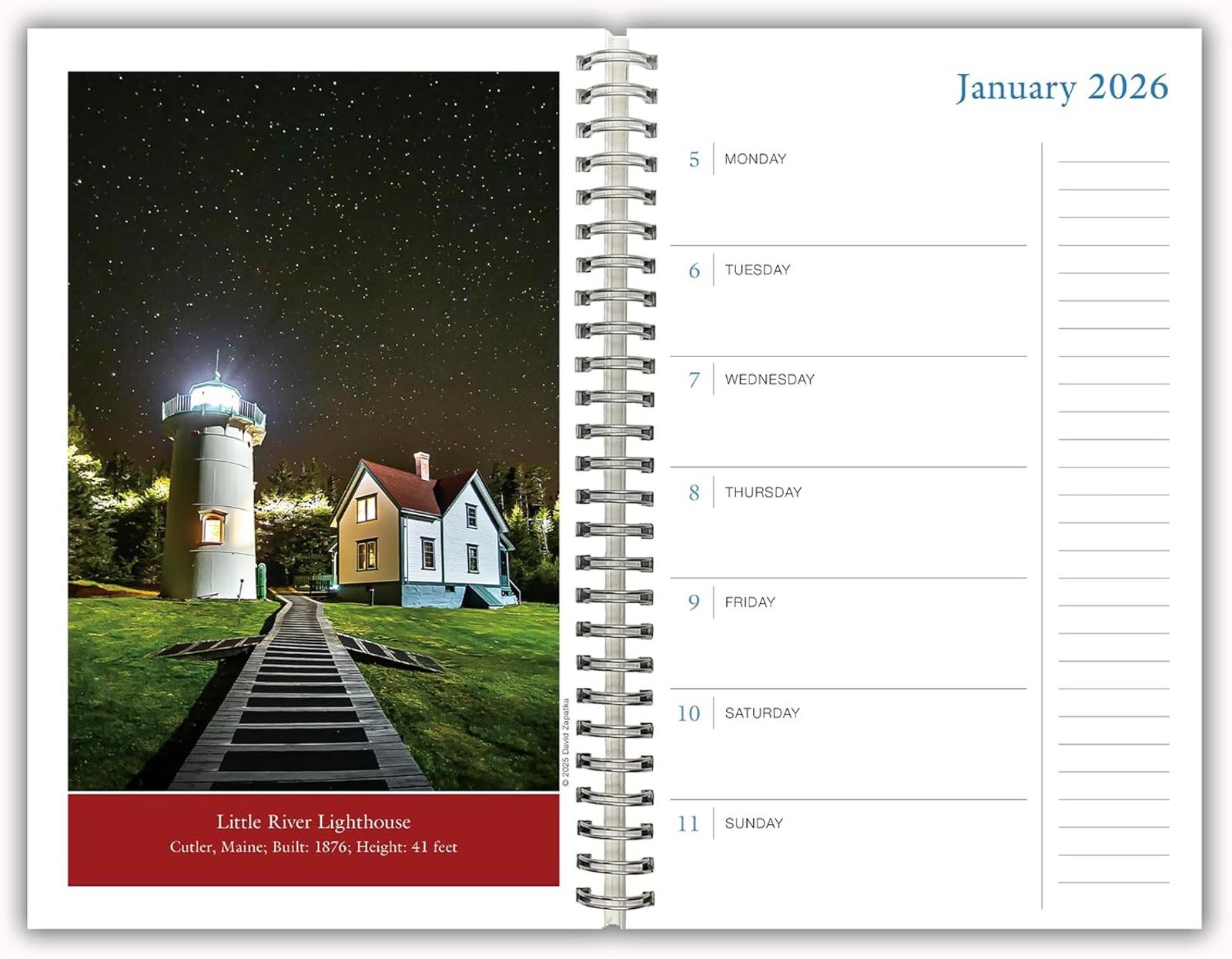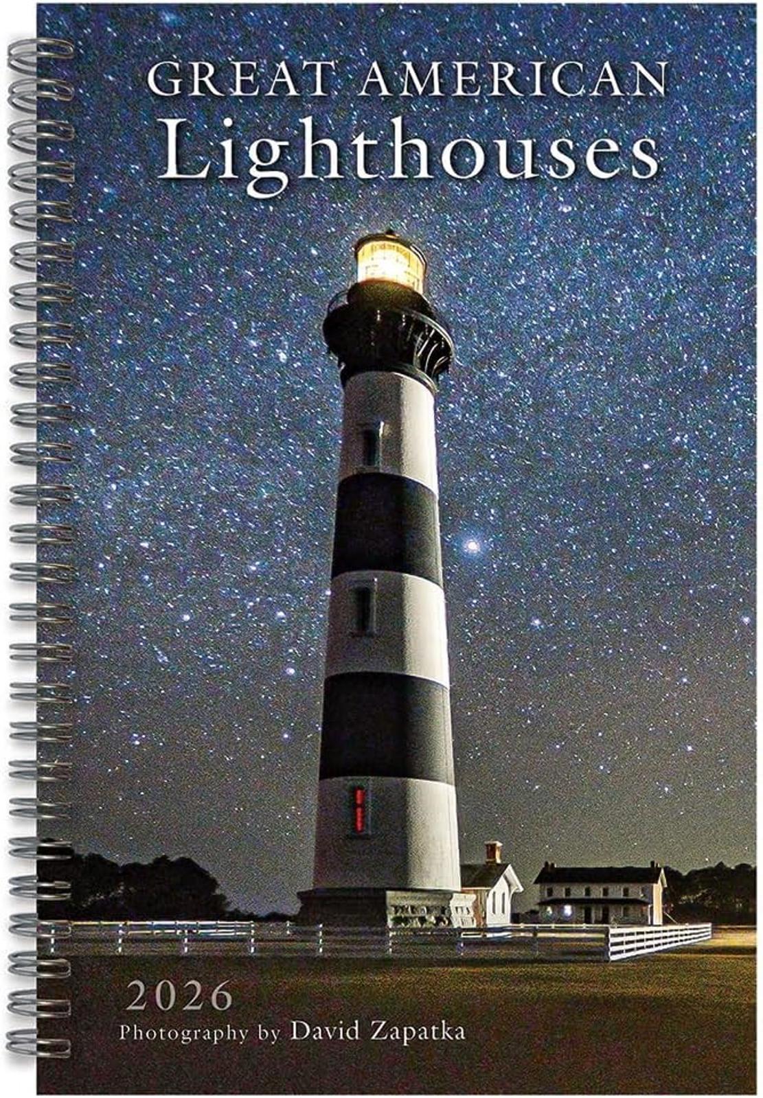 This new weekly calendar features US lighthouses against dramatic backdrops of the night sky. In