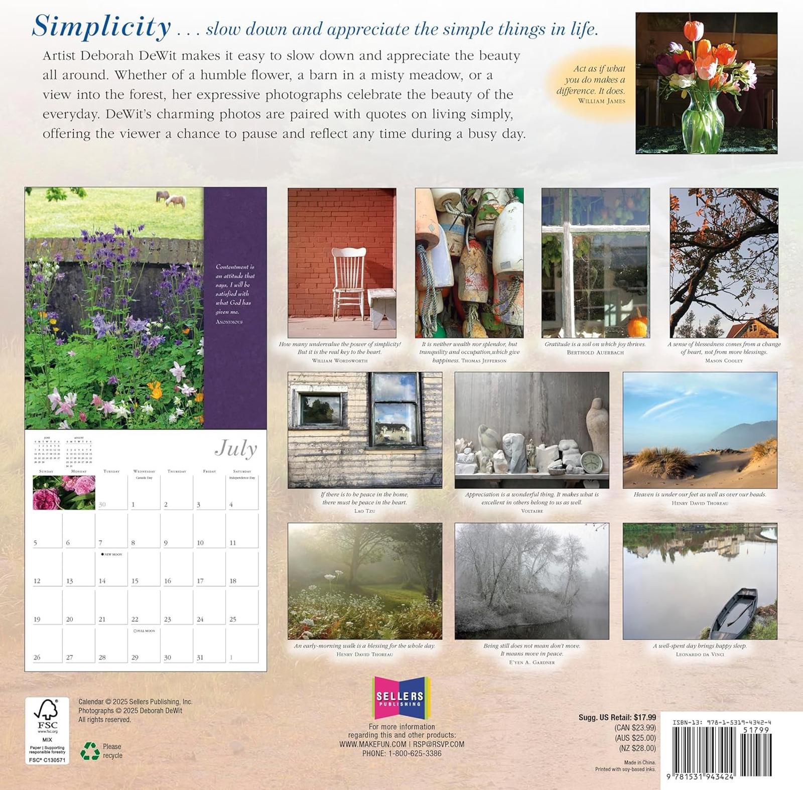 Artist Deborah DeWit finds beauty in the simple, ordinary rhythms of life. Whether of a quiet meadow morning, or a windowsill still life, her expressive photographs celebrate the virtues of the everyday. DeWit’s honest and charming photos are paired with quotes on living simply, offering the viewer a chance to pause and reflect any time during a busy day.