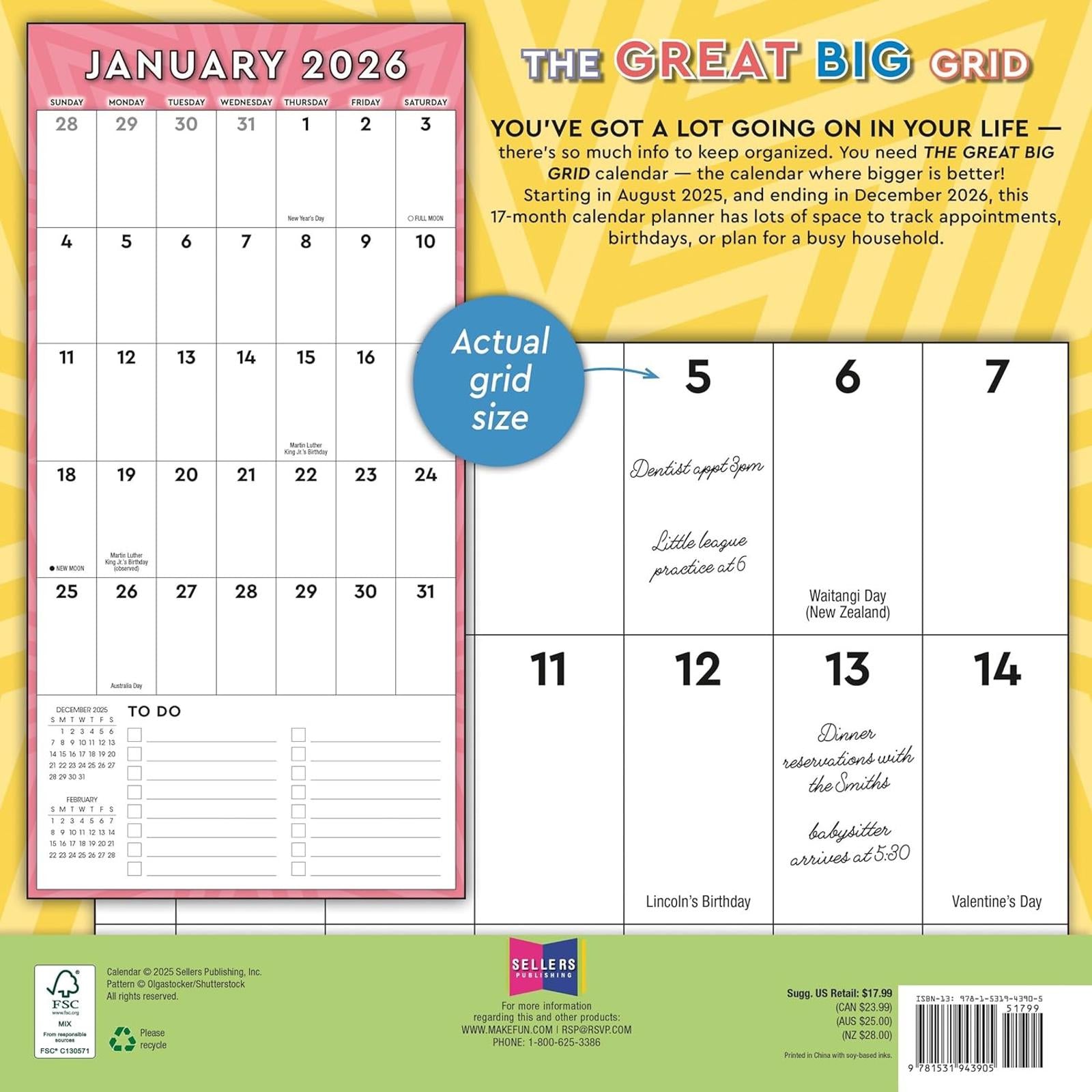 You’ve got so much info to keep organized! This new calendar proves bigger is better. With 12″ x 24″ full grid pages there is plenty of space to track appointments, birthdays, or plan for a busy household. You’ll appreciate the ease of The Great Big Grid calendar in a really big way!