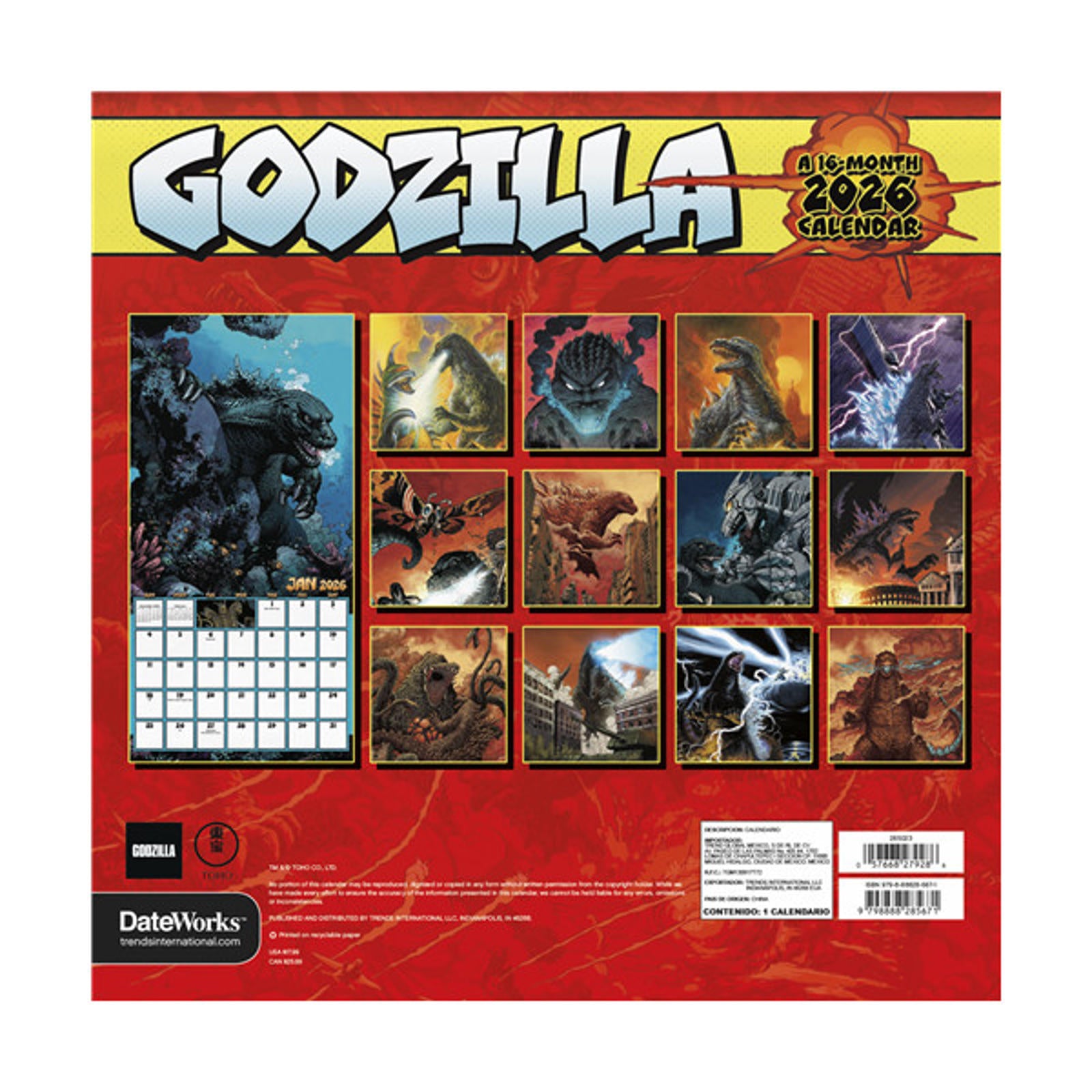 Trends International Godzilla - Classic 2026 12 x 12 Wall Calendar