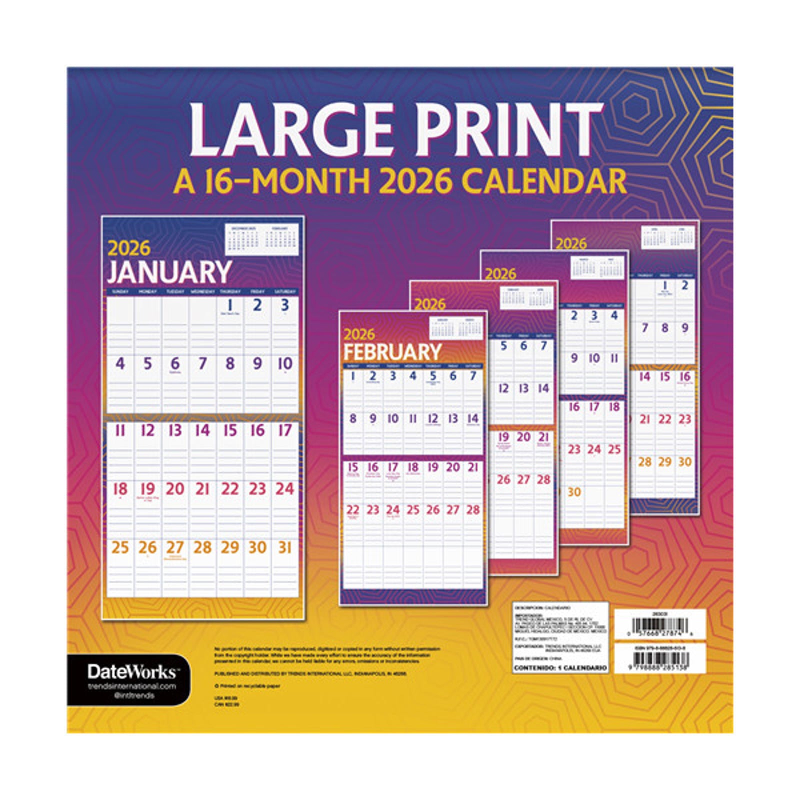 Trends International Large Print 2026 12 x 12 Wall Calendar
