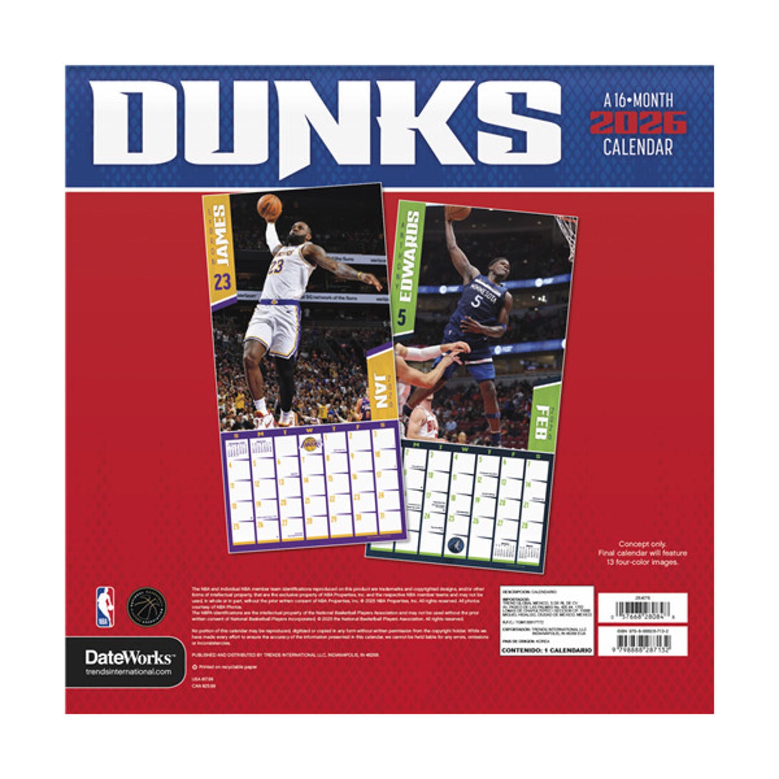 Trends International NBA Dunks 2026 12 x 12 Wall Calendar