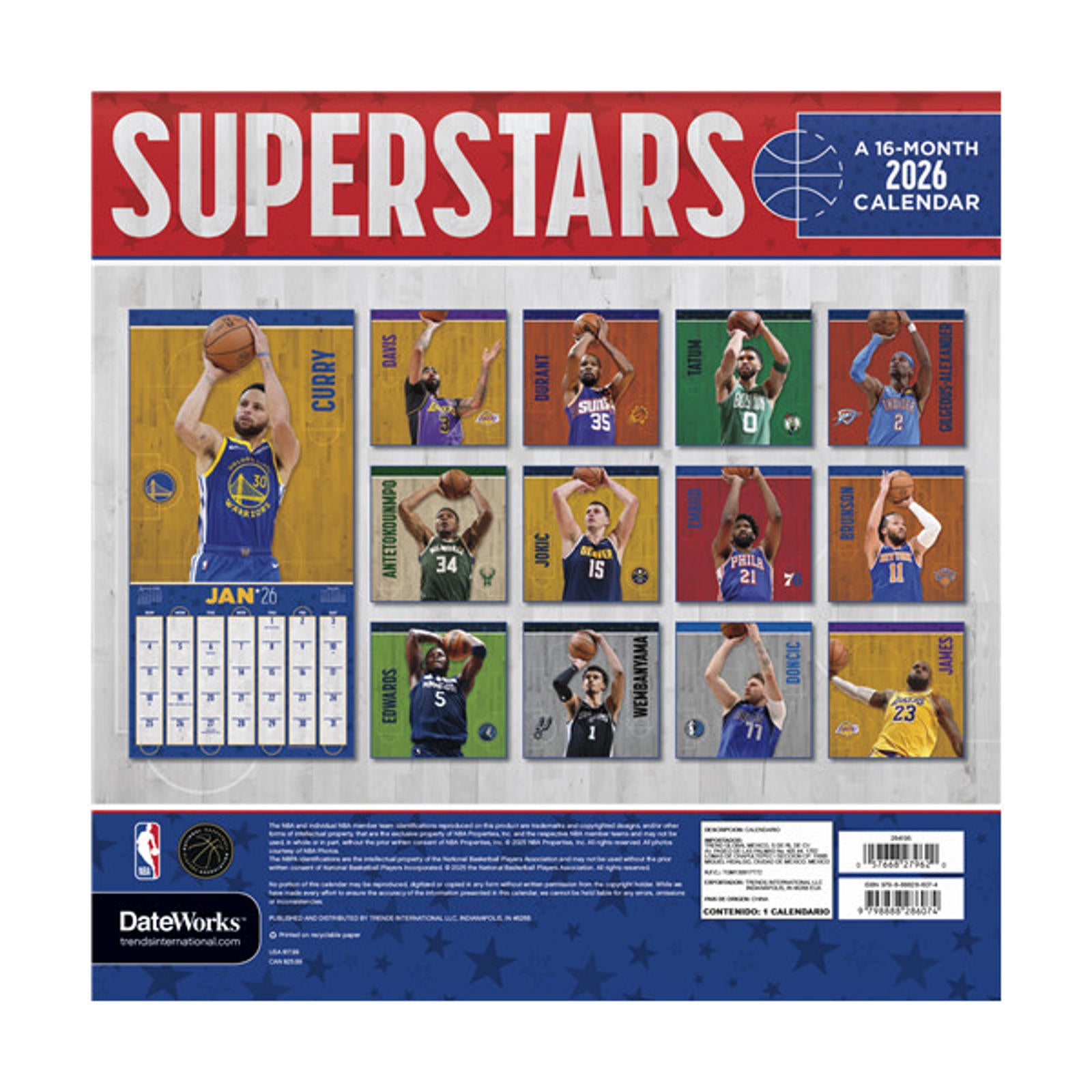 Trends International NBA Superstars 2026 12 x 12 Wall Calendar
