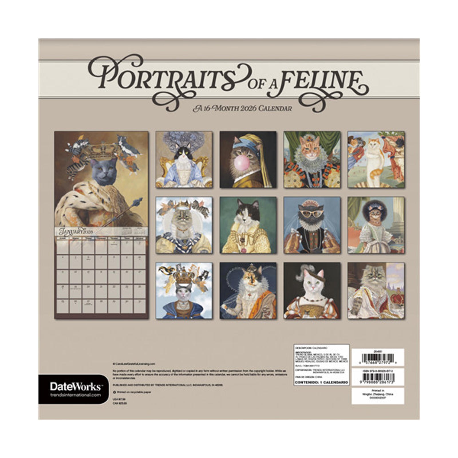 Trends International Portraits of a Feline - Carol 2026 12 x 12 Wall Calendar
