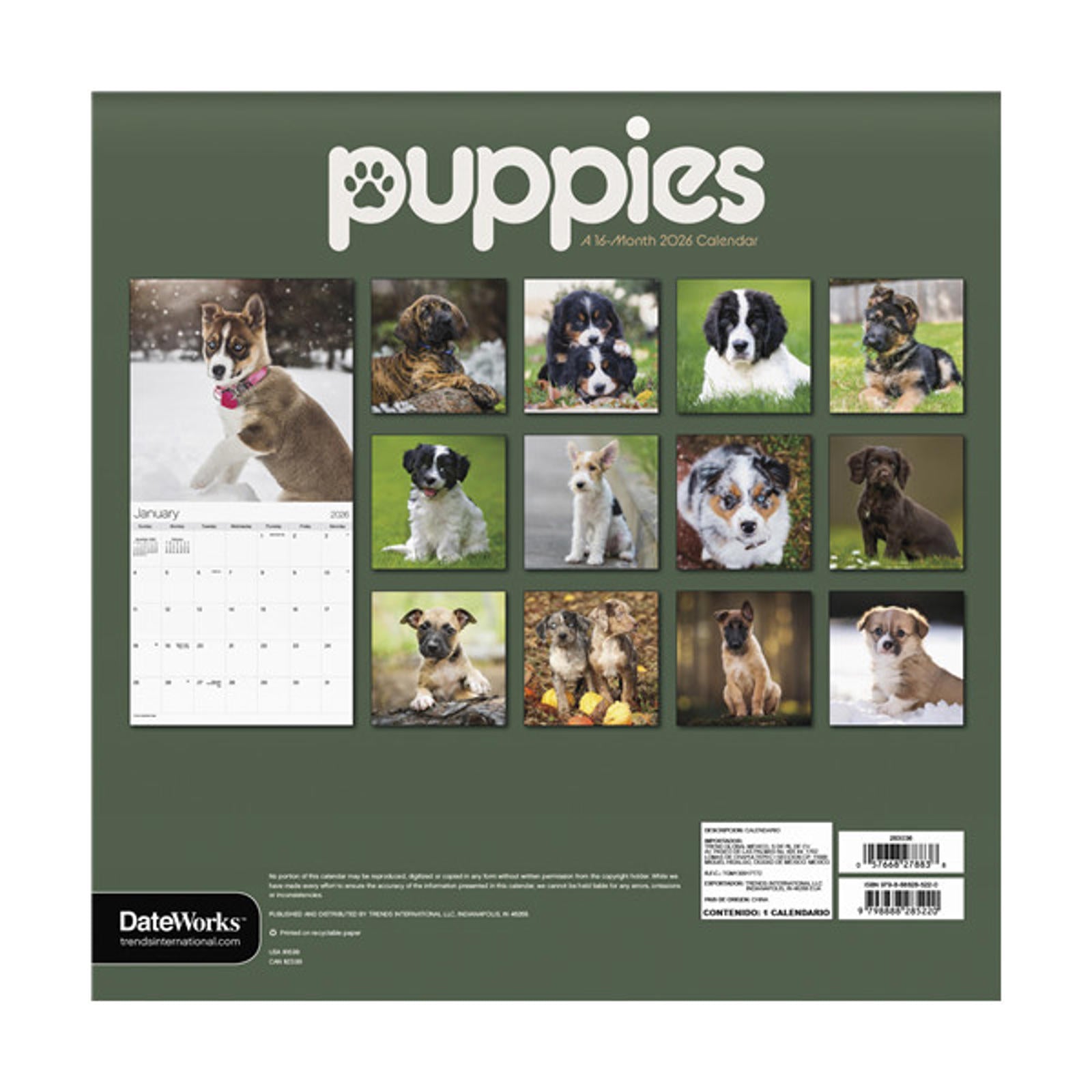 Trends International Puppies 2026 12 x 12 Wall Calendar