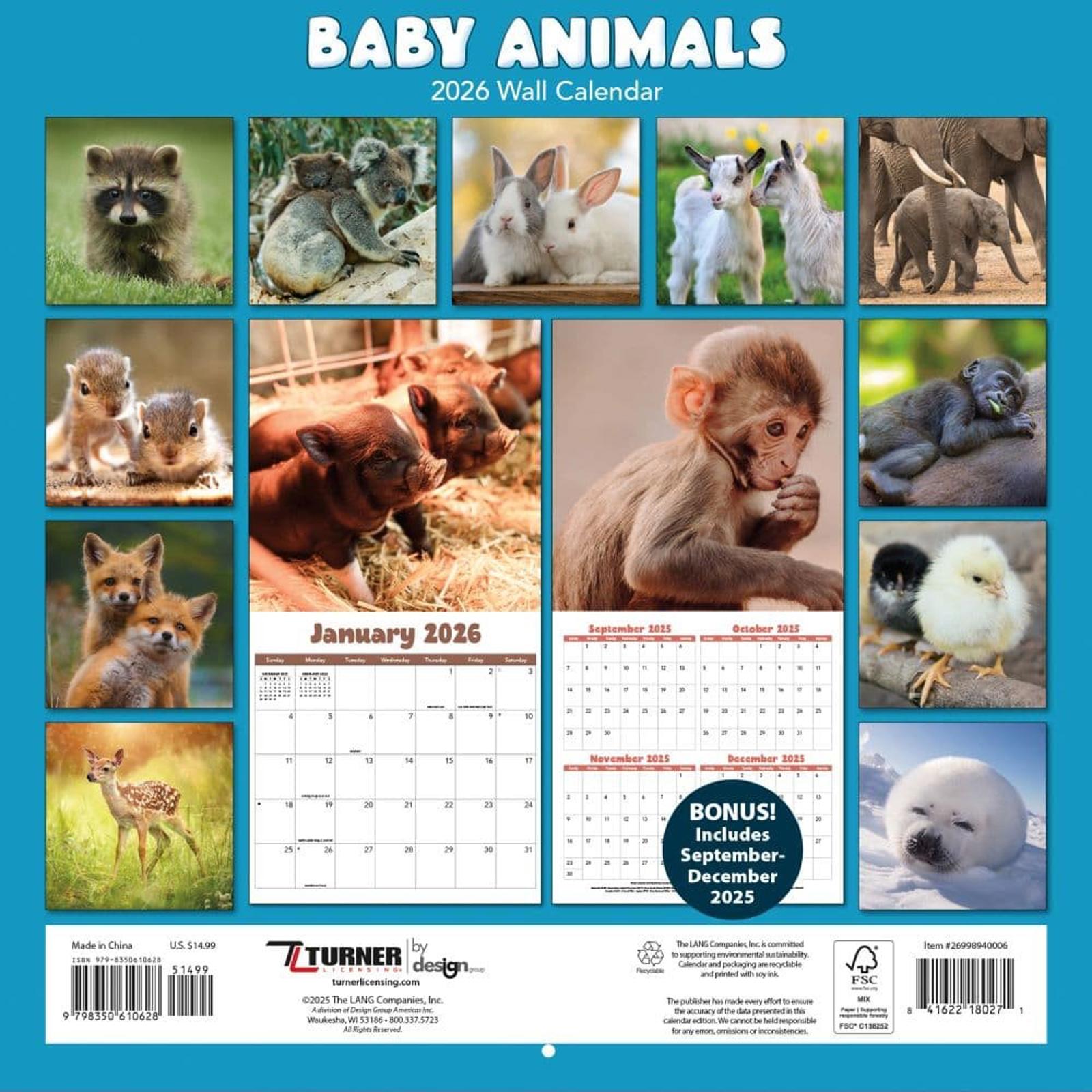 Turner Baby Animals 12x12 Photo 2026 Wall Calendar