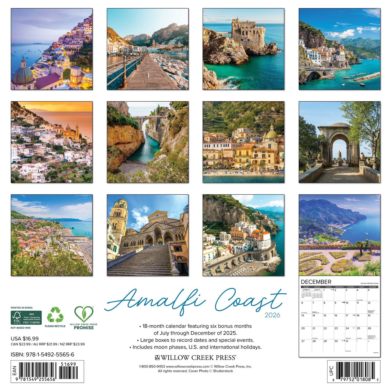 COASTAL ELEGANCE - Transport yourself to the sun-drenched shores of southern Italy with this breathtaking 2026 wall calendar featuring the stunning villages, cliffside views, and sparkling waters of the Amalfi Coast. Each month captures the region’s timeless charm, making it a perfect escape for travel lovers and dreamers alike.