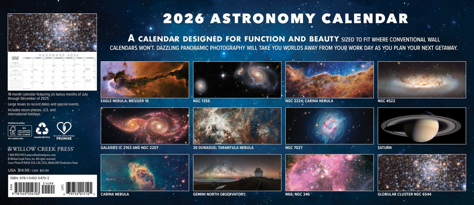 EXPLORE THE COSMOS – The wonders of the universe, captured by NASA astronomers, unfold in colorful focus and panoramic splendor with the 2026 Astronomy Panoramic Calendar. Marvel at the magnificence of our solar system as you witness the intricate details of distant galaxies, the explosive brilliance of supernovas, the ethereal beauty of nebulas, and the graceful dance of comets.