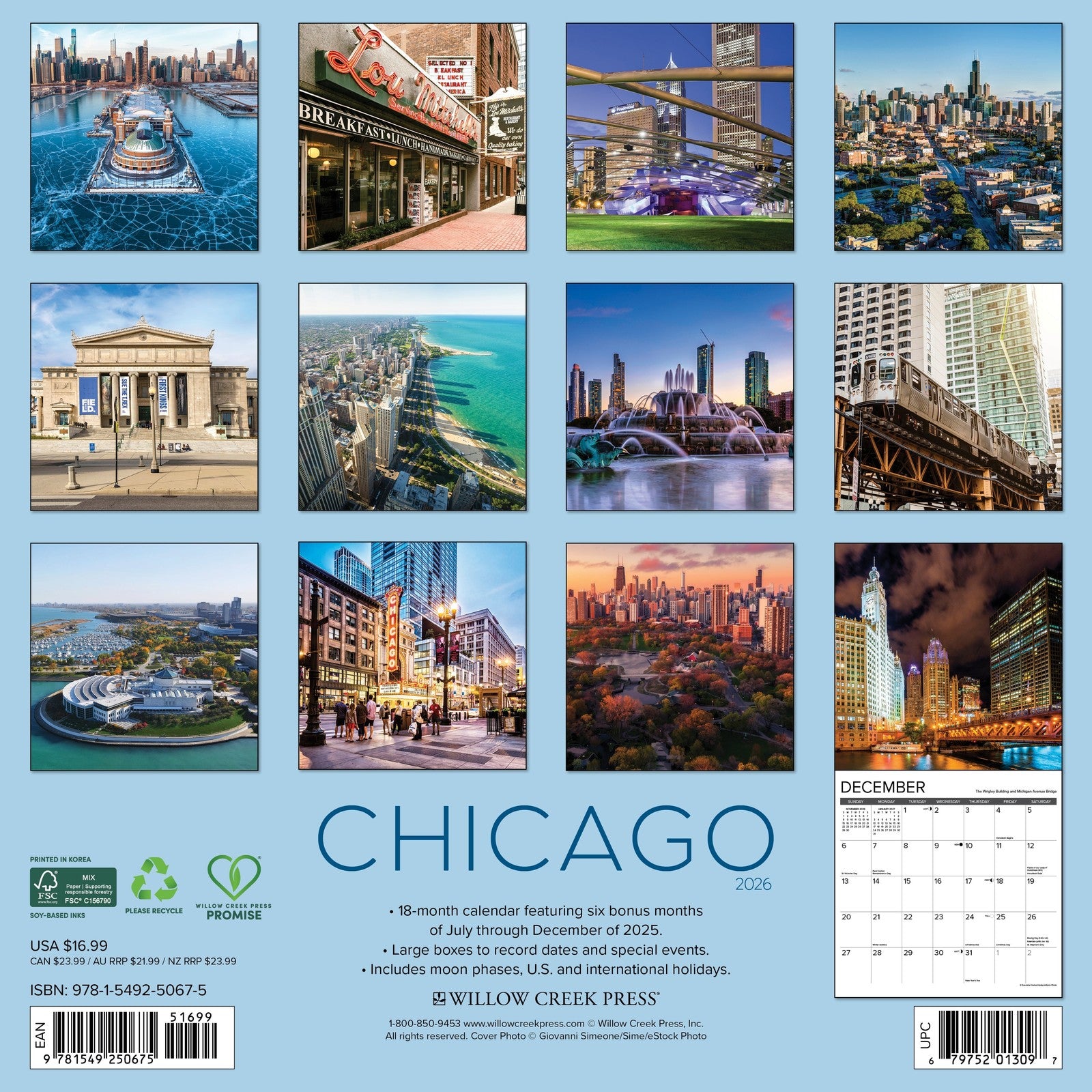 CITY SPLENDOR – Explore the Windy City through this stunning 2026 calendar that captures Chicago's architectural marvels, lakefront beauty, and iconic landmarks from day to night. Each month offers a vibrant look at the rich culture, skyline, and spirit that define this world-class city.