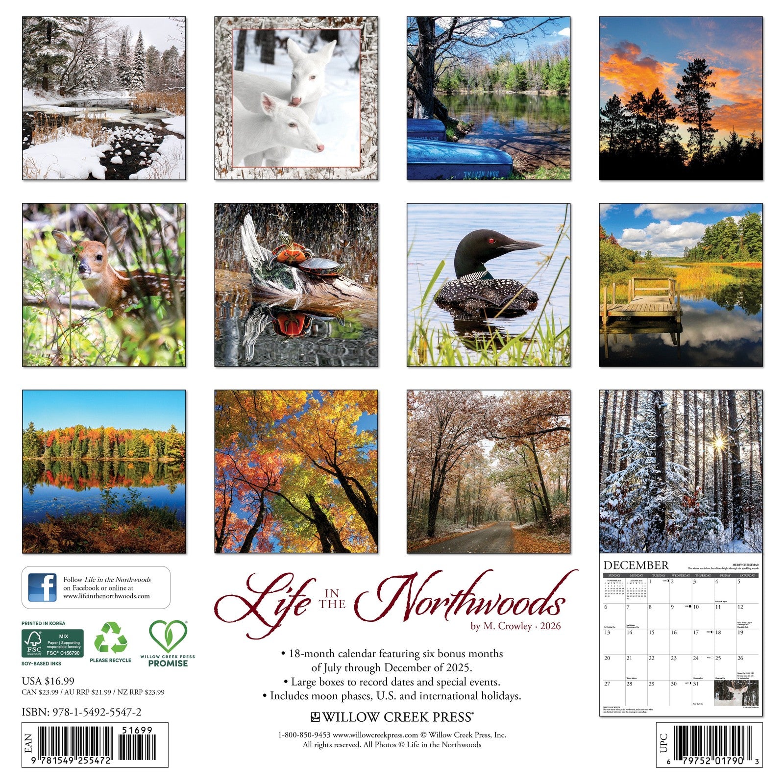 WILDERNESS BEAUTY – The Life in the Northwoods 2026 calendar brings you serene forest scenes, vibrant wildlife, and the changing seasons of the northern wilds. Each month captures the peaceful charm and natural wonder of woodland lakes, loons, deer, and snowy pines.
