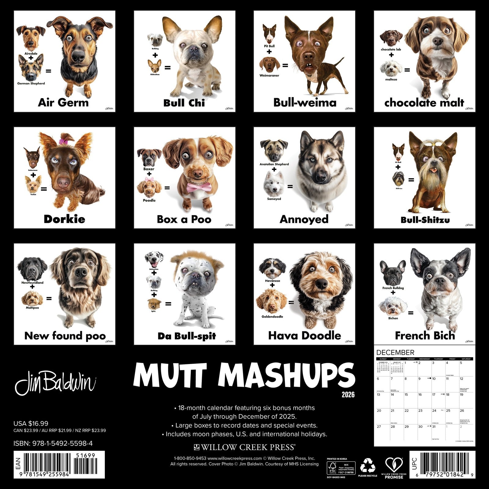 Willow Creek Mutt Mashups 2026 12" x 12" Wall Calendar