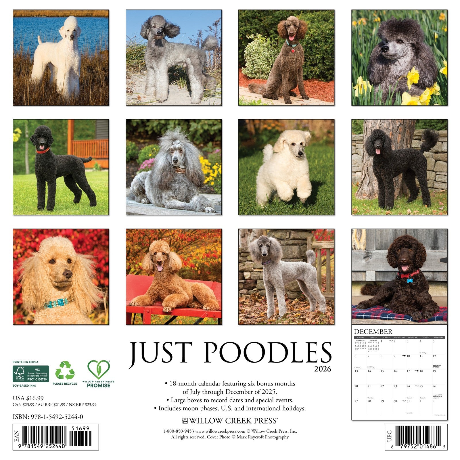POODLE PERFECTION – The 2026 Just Poodles Wall Calendar features an elegant showcase of standard, miniature, and toy poodles in their full glory, from classic cuts to playful curls. Each month highlights the intelligence, beauty, and personality of this beloved and stylish breed.