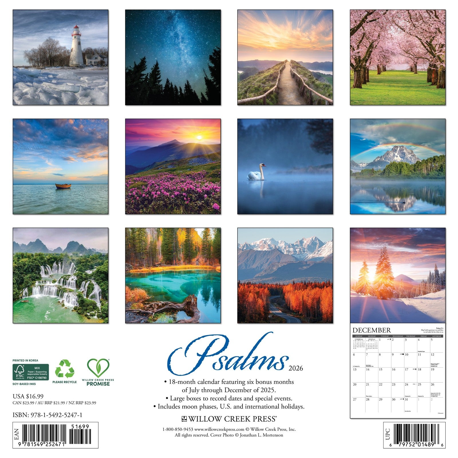 INSPIRING BEAUTY – Let the power of scripture and the majesty of nature uplift your spirit each month in this beautifully photographed Psalms 2026 calendar. Each image is paired with a verse from the Book of Psalms, offering peace, hope, and reflection throughout the year.